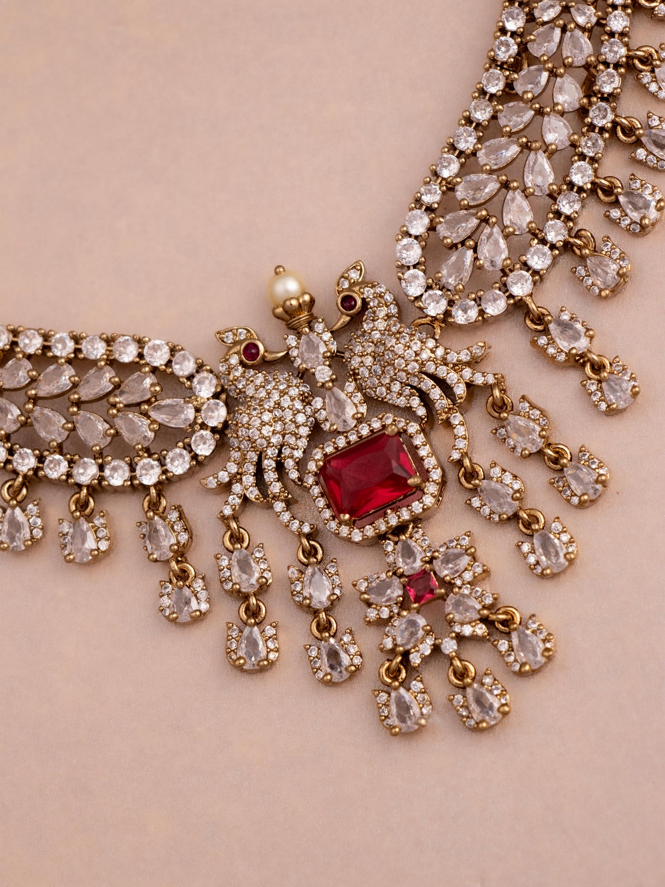 Elevate your jewelry collection with the Trendy Mayil Princess Necklace, a stunning piece that combines regal elegance with modern flair. Featuring an intricate peacock design and dazzling diamond embellishments, this necklace is available in five exquisite color options: Ruby, Green, Pink, Mint, and Purple.